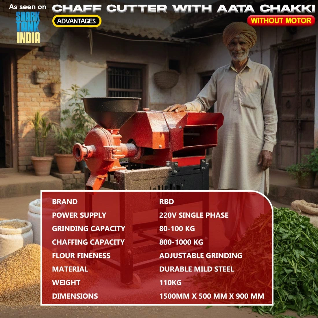 - Model: RBD 2-in-1 Chaff Cutter & Atta Chakki (Motorless)