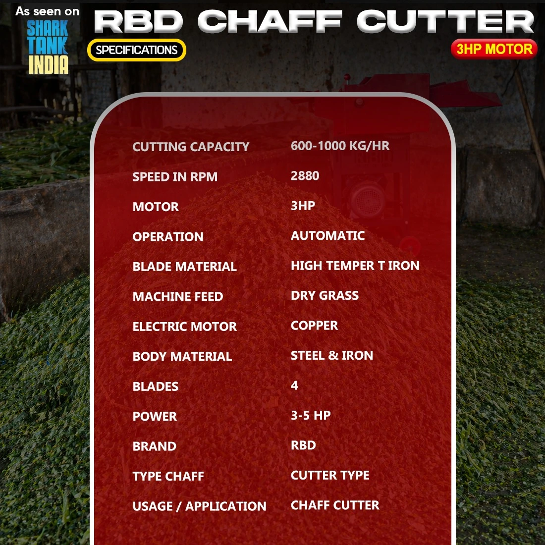 RBD 3HP Automatic Chaff Cutter Machine (600-1000 kg/hr) - Heavy Duty Toka Machine