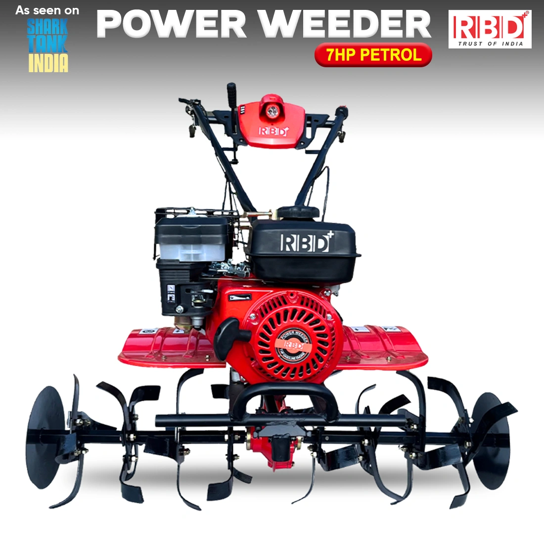 The RBD Power Weeder price depends on engine power, start type, and included attachments such as weeder blades, tiller blades, or paddy wheels. RBD offers some of the best power weeder and power tiller prices in India with fast delivery and full after-sales support.