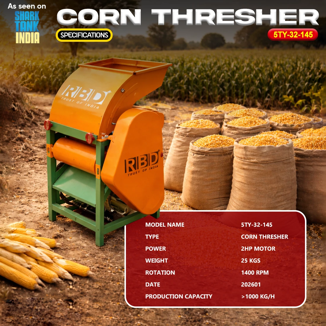 RBD Corn Thresher Machine | 2HP Motor | 1000+ kg/h Output | As Seen on Shark Tank India