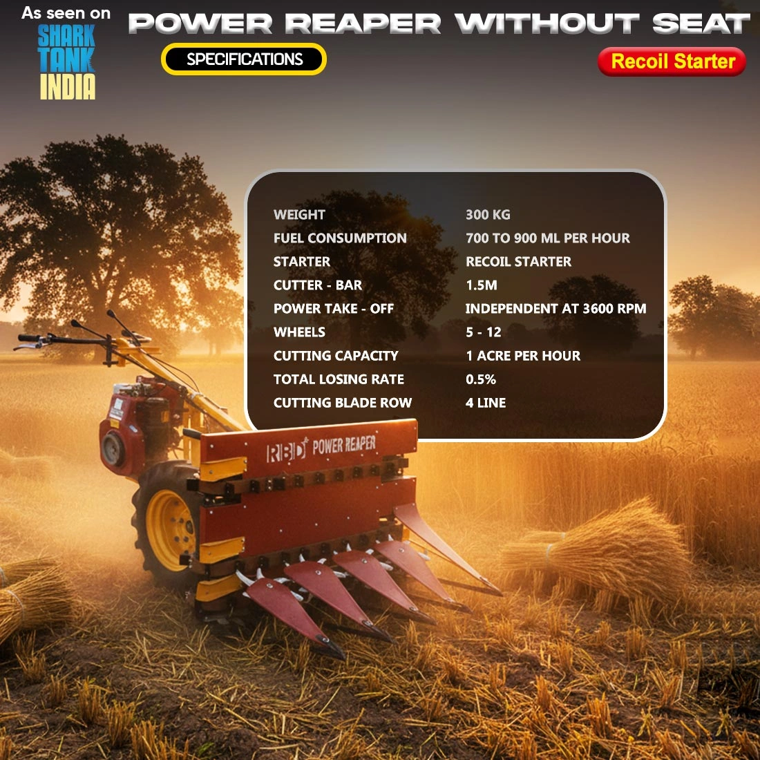 RBD Self Power Reaper 10 HP – Best Paddy Cutting Machine