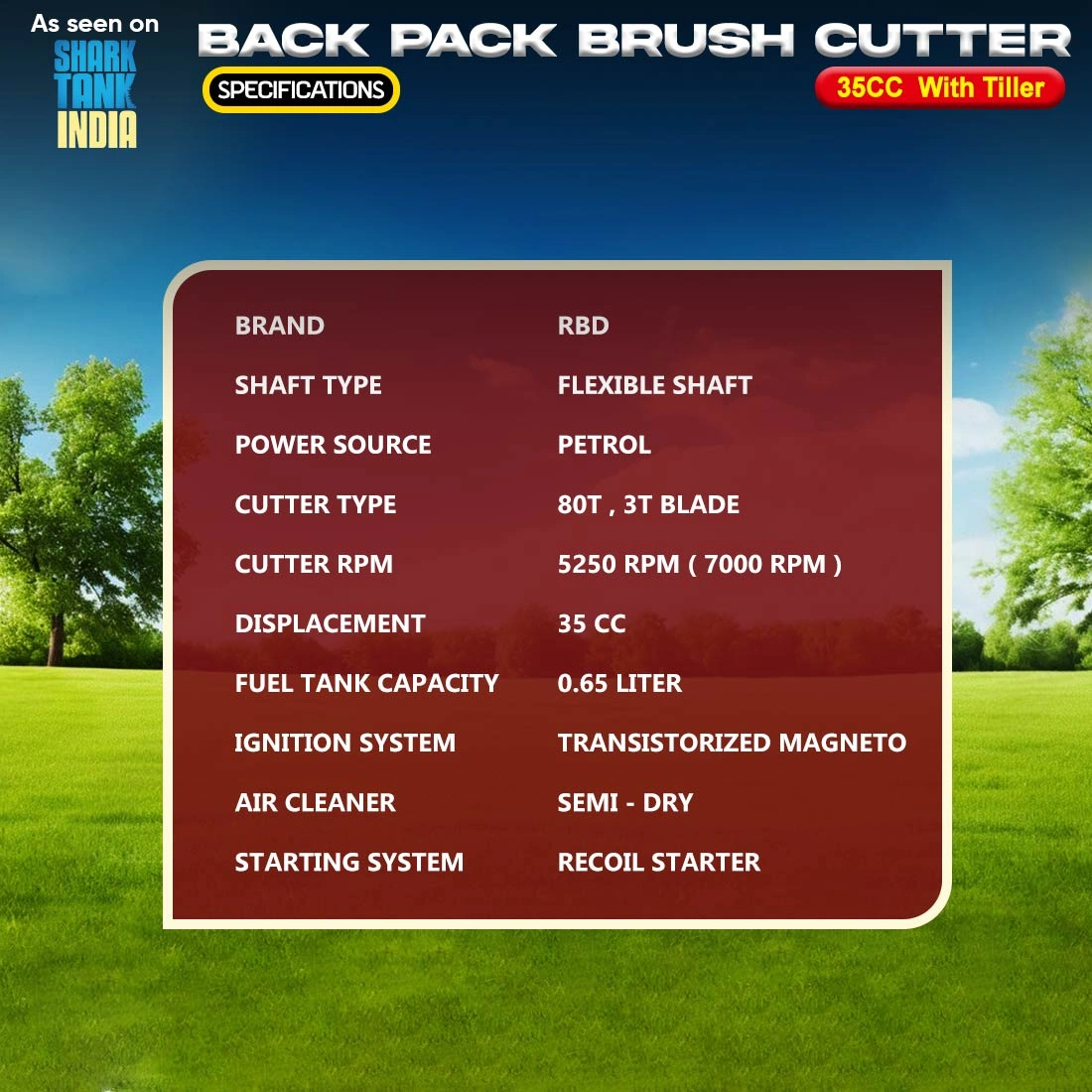 Find the RBD 35cc Backpack Brush Cutter with Tiller at your nearest landscaping equipment store or shop online for exclusive deals. Perfect for farmers and professionals seeking a reliable, multi-functional solution.