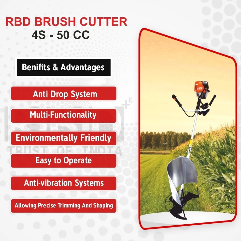 The RBD 50cc ensures precise and clean cuts with minimal crop damage. Unlike electric grass cutters or battery brush cutters, it offers consistent power for large-scale operations without the need for charging or cords.