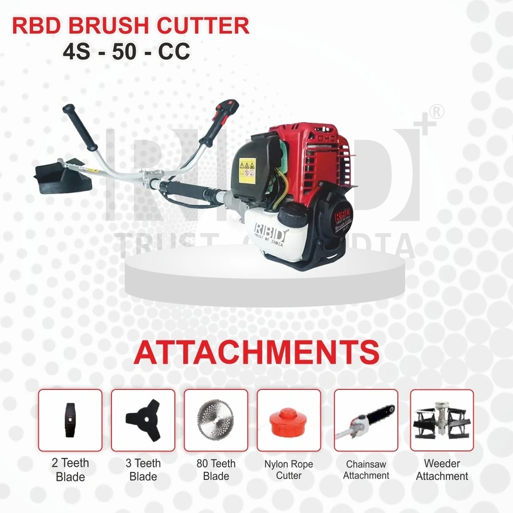Compared to electric grass cutting machines or battery-operated brush cutters, the RBD 50cc’s petrol engine provides higher torque, longer runtime, and consistent power. It’s engineered for professionals who demand durability and high performance in every task.