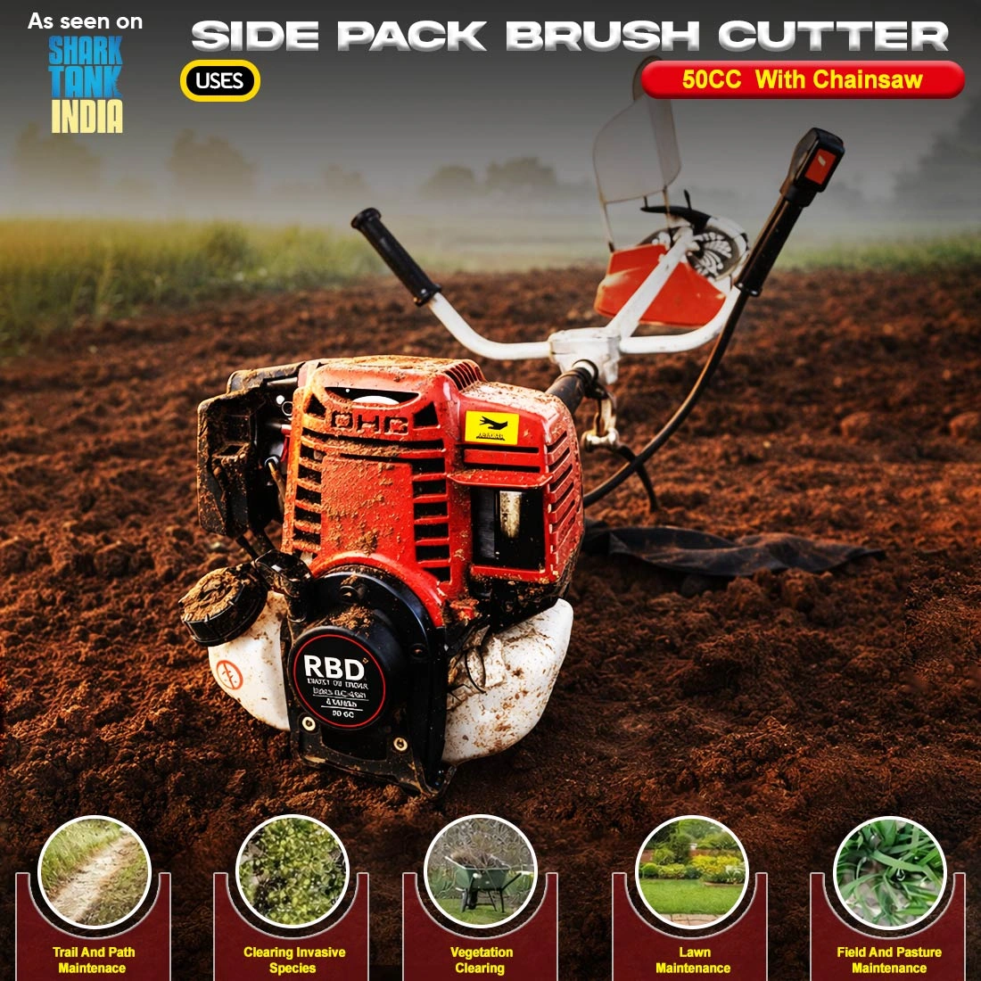 RBD 4-Stroke 50cc Side Pack Brush Cutter with Chainsaw attachment : Power Meets Precision