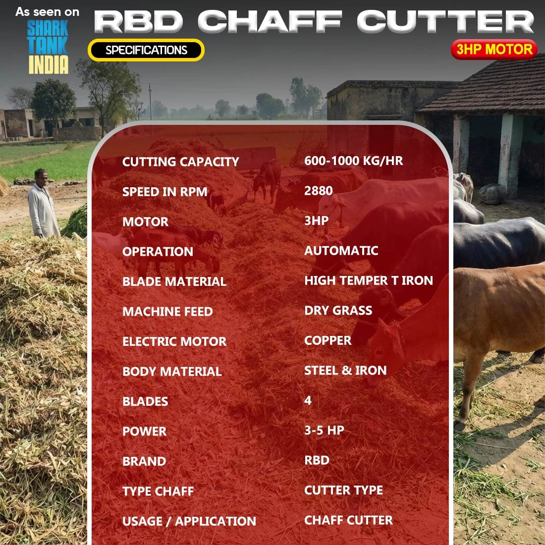 - Cost-Effective: Reduces manual fodder cutting labor by up to 60%.