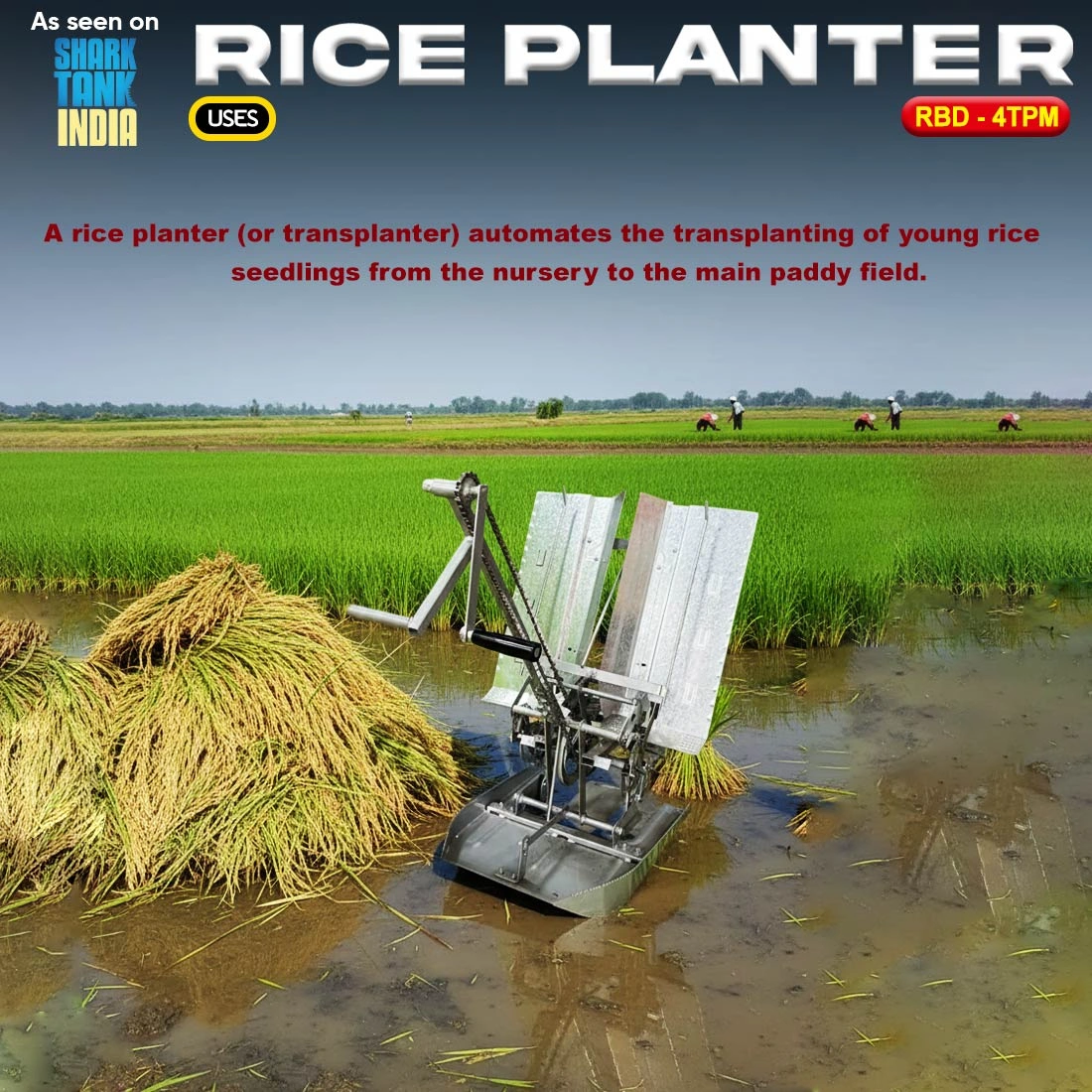 - Used for transplanting rice seedlings from nursery beds to paddy fields.