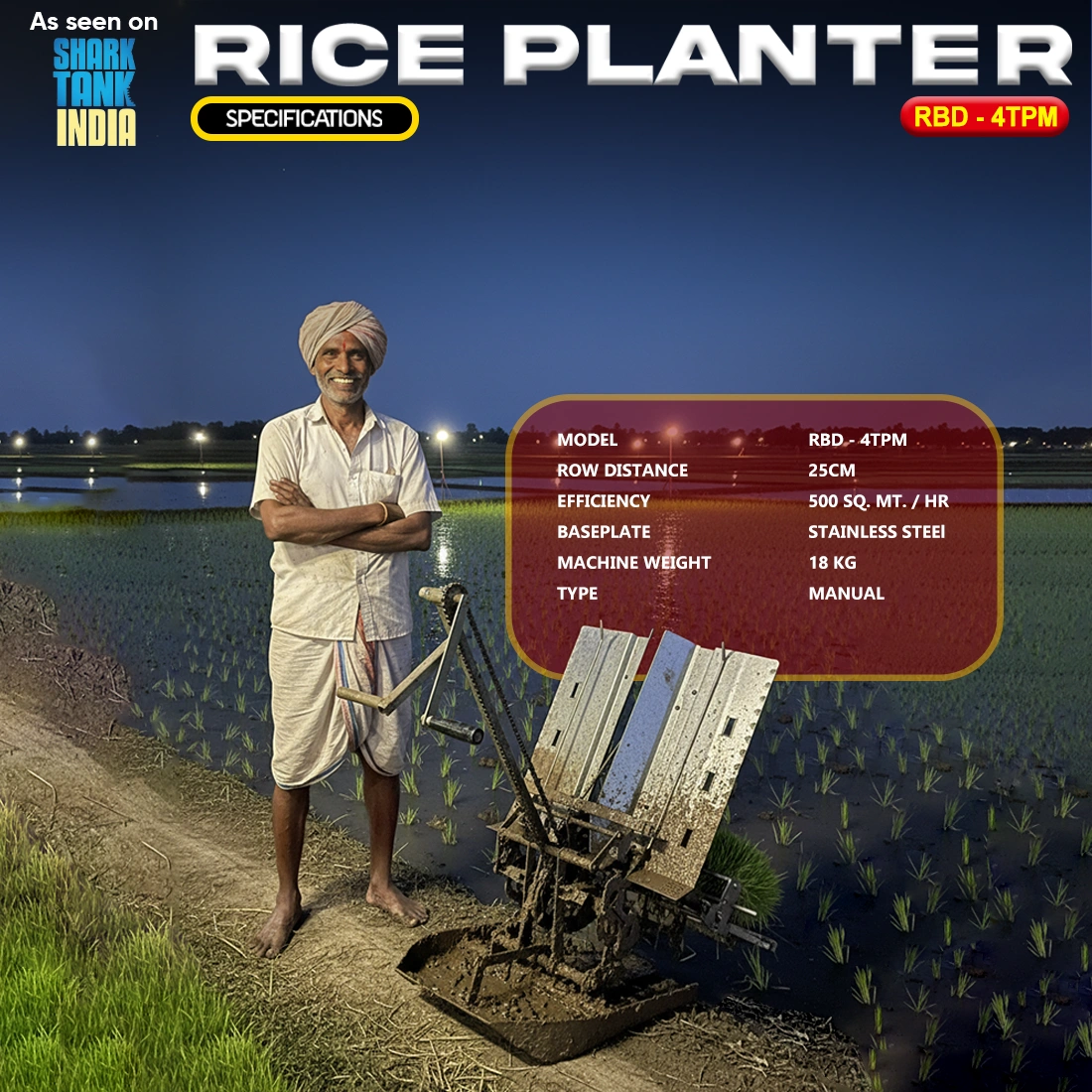 RBD Machine Tools is known for designing reliable and farmer-friendly agricultural equipment. The RBD 2 Row Rice Transplanter combines simplicity, strength, and performance. Whether you are a small-scale farmer or part of a cooperative, this manual rice planter is an excellent investment to improve your planting efficiency and crop output.